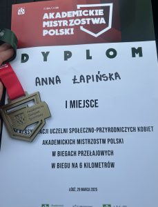 29 marca w Parku Baden-Powella w Łodzi zostały rozegrane Akademickie Mistrzostwa Polski w biegach przełajowych w których wystartowała reprezentacja WAT. WTC było reprezentowane przez ppor. Annę Łapińską, która wystartowała na dystansie 6 km oraz w sztafecie mieszanej 4 x 1.5 km. Trasę, złożoną z 4 okrążeń 1.5 kilometrowych z wymagającym podbiegiem na każdej z nich, ppor. Anna Łapińska pokonała w czasie 24’12, co dało jej 6 miejsce w klasyfikacji ogólnej kobiet. Jednocześnie ten wynik dał jej zwycięstwo w klasyfikacji Uczelni Społeczno-