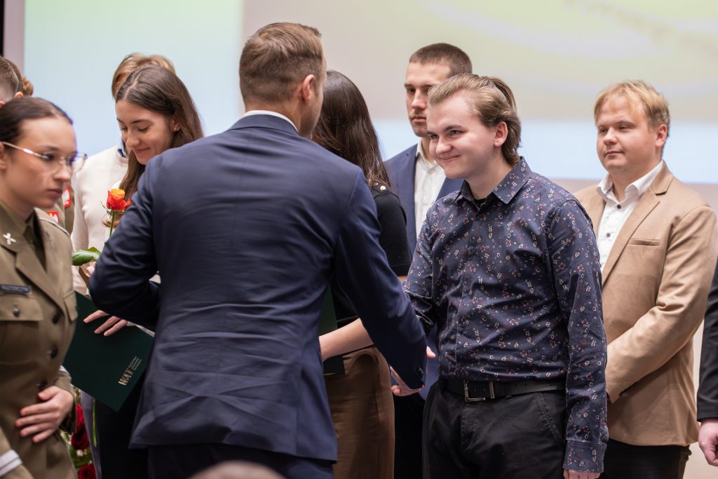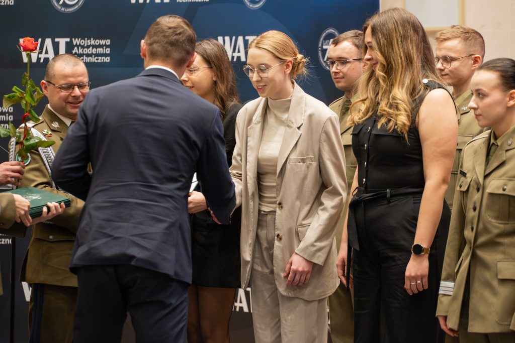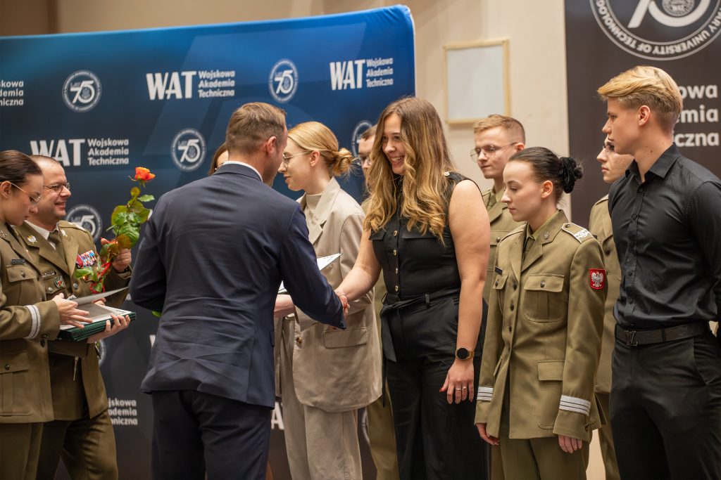 Podczas uroczystego spotkania z okazji Święta Wojskowej Akademii Technicznej i Dnia Podchorążego, które odbyło się 28 listopada 2025 r., wręczono nagrody w Konkursie Rektora WAT na najlepszą pracę studencką wykonaną w ramach działalności w kole naukowym. Wyróżnienia zostały przekazane przez Dyrektora Departamentu Szkolnictwa Wojskowego MON, Pana Jakuba Mykowskiego, w asyście Rektora–Komendanta WAT, gen. bryg. prof. dr. hab. inż. Przemysława Wachulaka. W gronie nagrodzonych znaleźli się studenci reprezentujący Wydział Nowych Technologii i Chemii, których prace zostały ocenione jako jedne z najlepszych w tegorocznej edycji konkursu.