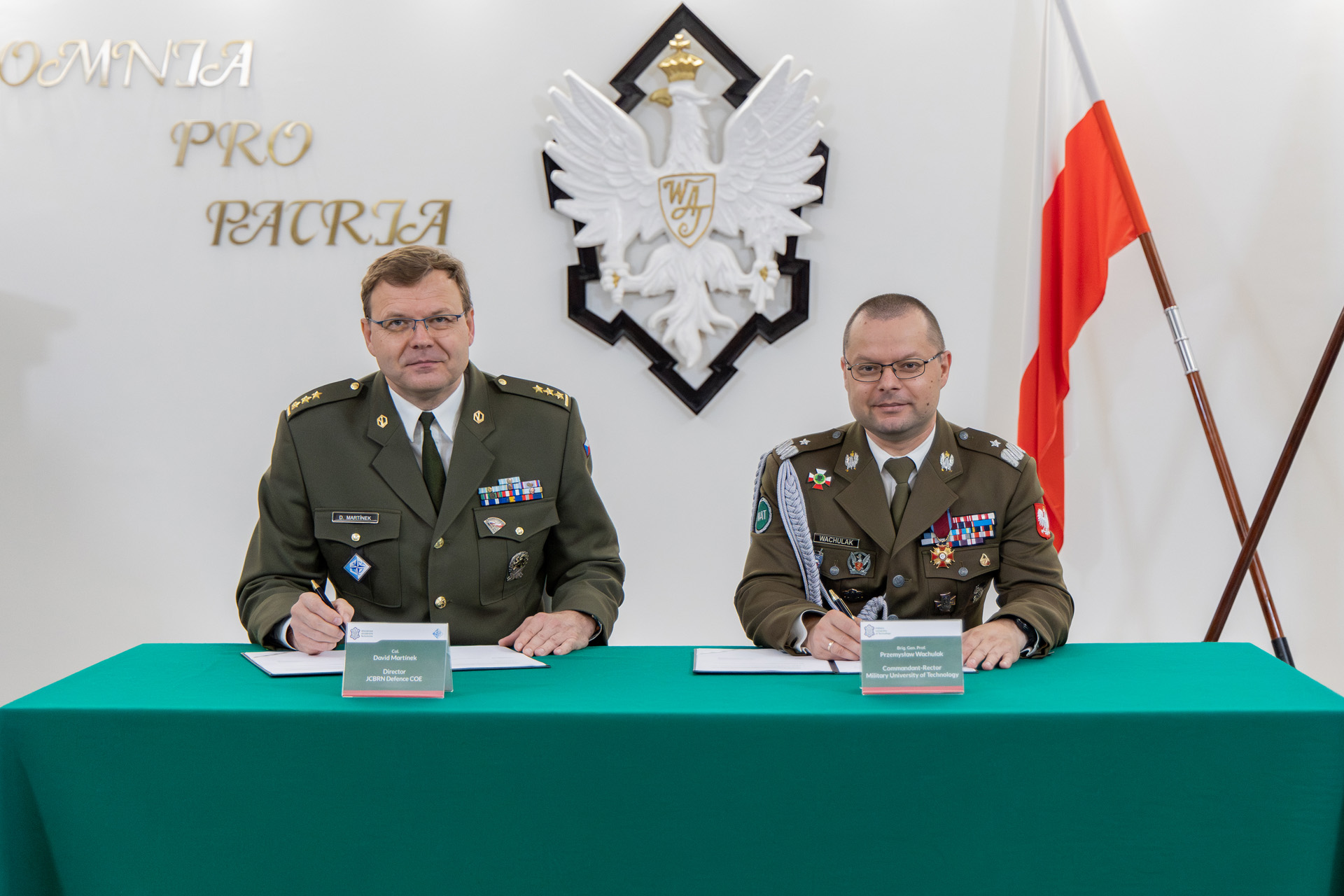 Porozumienia podpisali 8 października 2025 r. w Wojskowej Akademii Technicznej Rektor-Komendant WAT gen. bryg. prof. dr hab. inż. Przemysław Wachulak i Dyrektor Centrum Eksperckiego NATO ds. obrony przed bronią masowego rażenia (JCBRN) płk David Martinek. Inicjatorem współpracy był Wydział Nowych Technologii i Chemii (WTC) WAT.