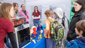 – Koło Naukowe Fotoniki przedstawiło zagadnienia związane z oddziaływaniem światła z materią, tłumacząc w przystępny sposób podstawy optyki i fotoniki.